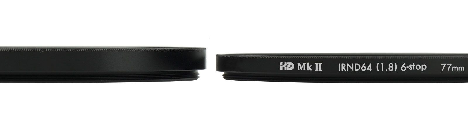 The HD Mk II IRND series uses an ultra-thin lightweight, precisely crafted aluminum frame, reducing the chance of vignetting immensely when using the filter with wide-angle lenses. It is also very useful when stacking filters, which can be done thanks to the integrated front filter thread.
