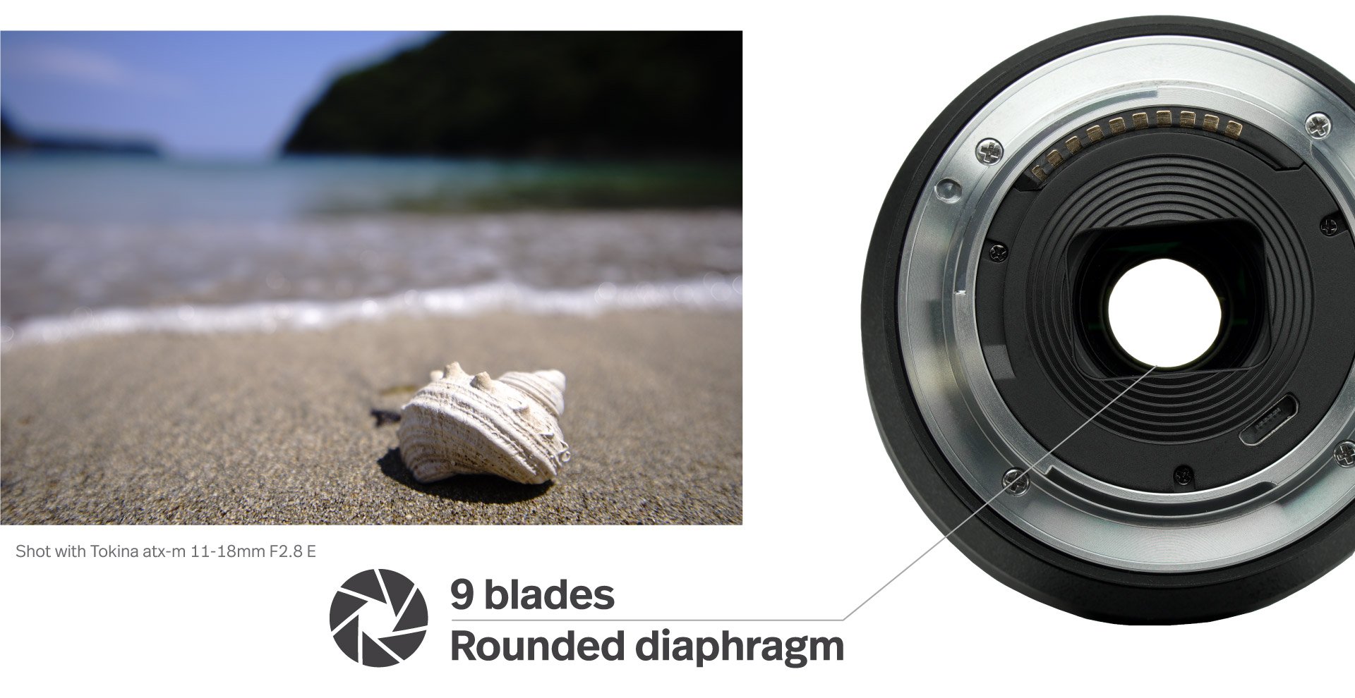 Tokina atx-m 11-18mm F2.8 มีรูรับแสงกว้าง f/2.8 ตลอดช่วงซูมสำหรับการถ่ายภาพที่มีระยะชัดลึกน้อย พร้อมไดอะแฟรม 9 ใบที่ช่วยให้โบเก้นุ่มนวลและกลมสวย