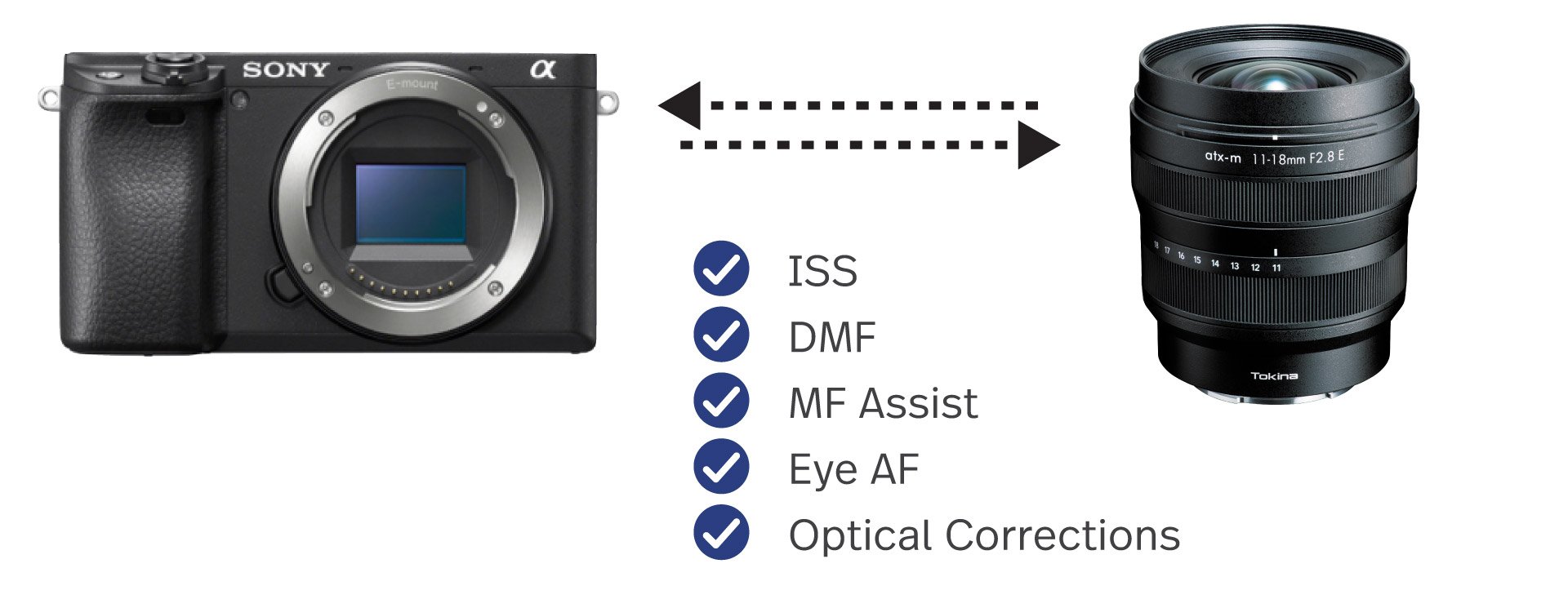 Tokina atx-m 11-18mm F2.8 เข้ากันกับกล้อง Sony E mount ได้อย่างสมบูรณ์และรองรับการใช้งานฟีเจอร์พิเศษของกล้องเต็มระบบ เช่น Fash hybride AF, Image Stabilization, Direct Manual Focus, MF Assist mode, Eye AF รวมถึงการปรับแก้ทางออปติคัลต่างๆ เช่น Shading, Chromatic aberration และ Distortion