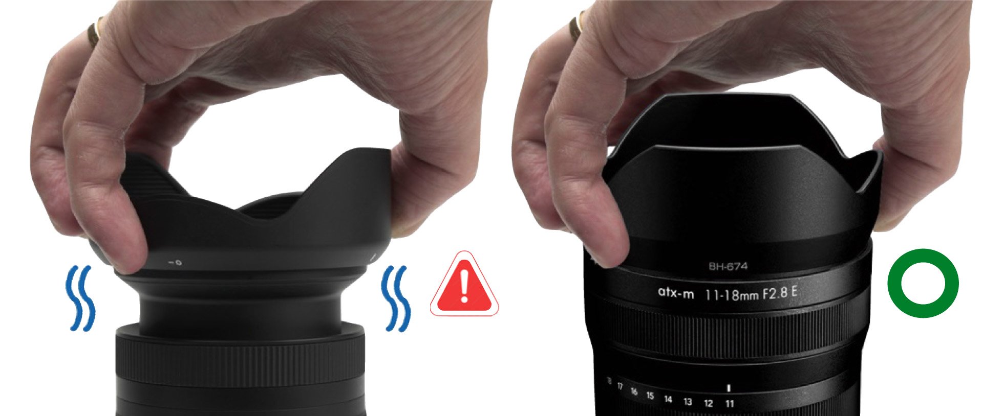 ฮูดกลีบดอกไม้สำหรับ Tokina atx-m 11-18mm F2.8 E ออกแบบให้ยึดเข้ากับส่วนหน้าของกระบอกเลนส์โดยไม่ขยับเมื่อซูม เพื่อการใช้ฮูดที่มีประสิทธิภาพ ลดความเสี่ยงที่กลไกภายในจะเกิดการเสียหายจากการใช้ฮูดเป็นประจำ