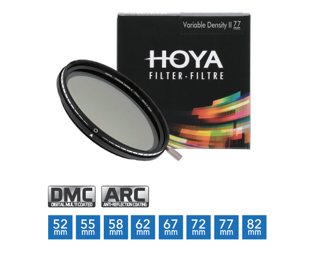 ฟิลเตอร์ Variable Density II ครอบคลุมค่า ND factor ตั้งแต่ 3 - 400 ชิ้นเดียวใช้แทนฟิลเตอร์ ND ปกติได้หลายชิ้น สะดวกและประหยัดกว่า สามารถปรับ ND แบบละเอียดได้ทันทีโดยไม่ต้องเปลี่ยนฟิลเตอร์ กรอบเฟรมดีไซน์พิเศษช่วยลดการเกิดขอบมืดได้อย่างยอดเยี่ยม มีที่จับสำหรับปรับความเข้มได้ง่ายพร้อมเกลียวหน้าสำหรับปิดฝาครอบเลนส์