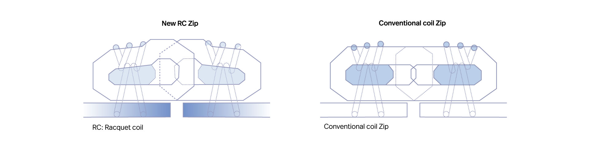 Racquet-shaped coil "RC" เป็นซิปที่ออกแบบพิเศษเพื่อทนทานรอยขีดข่วนและการกระแทก
