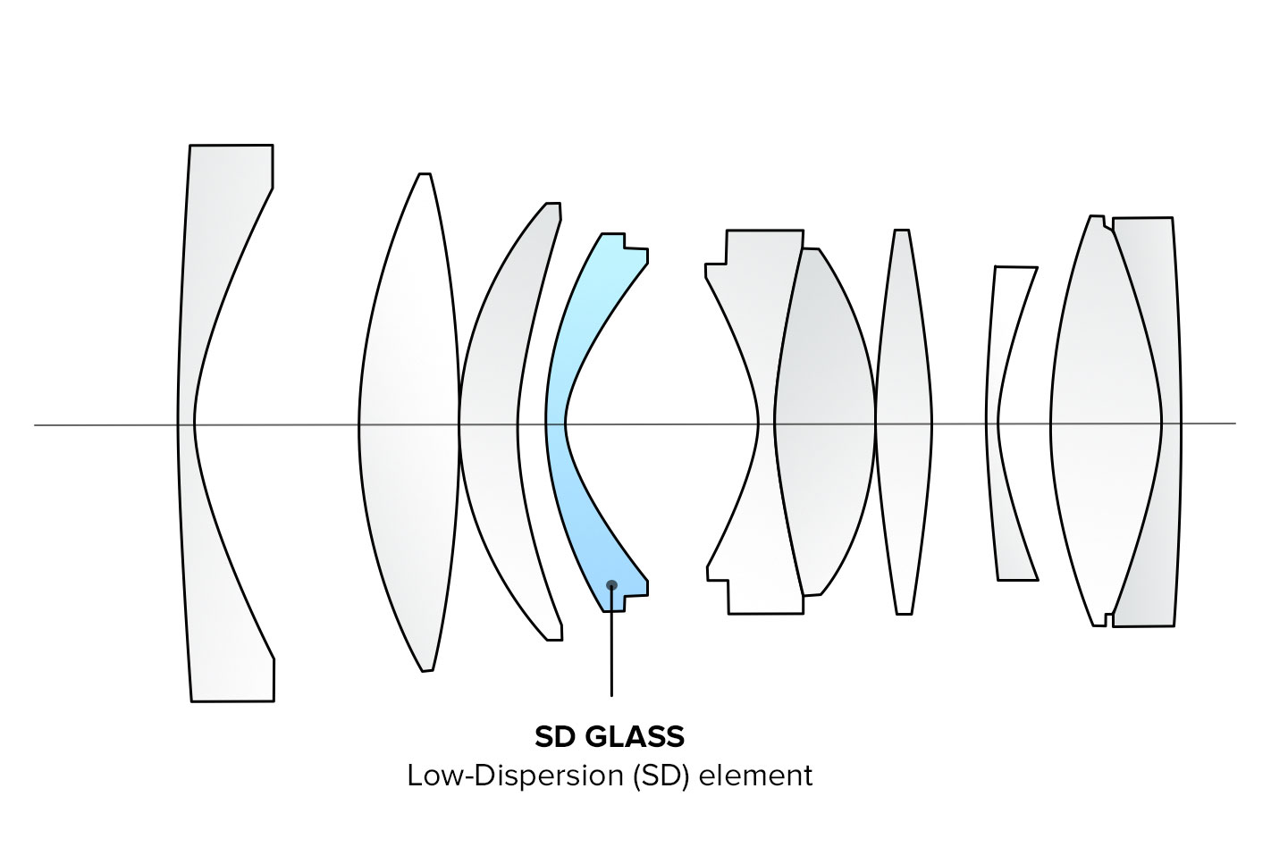 Special optical design formula together with one Low-Dispersion (SD) glass element provides excellent optical performance and corrects aberrations.