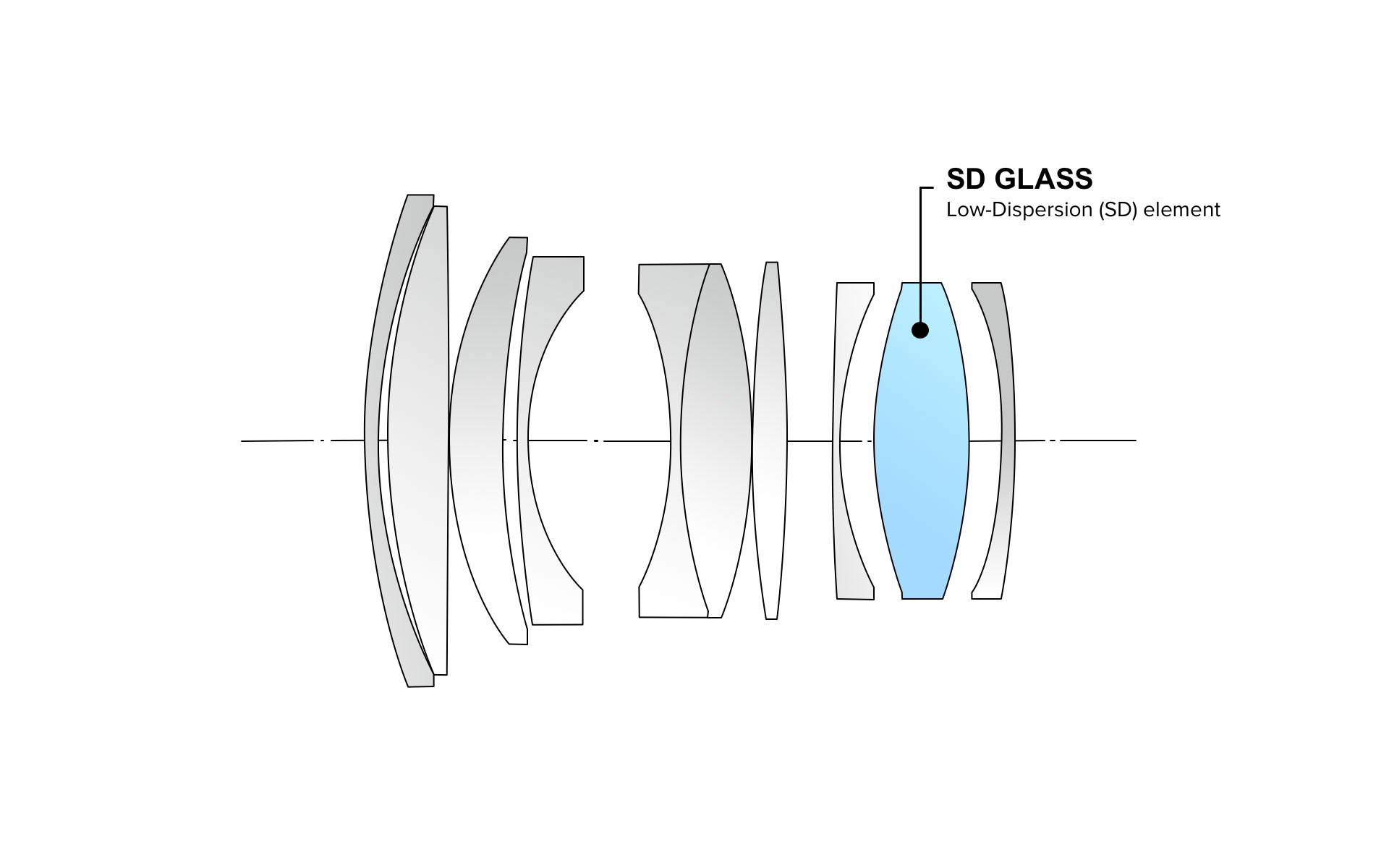 Special optical design formula together with one Low-Dispersion (SD) glass element provides excellent optical performance and corrects aberrations.
