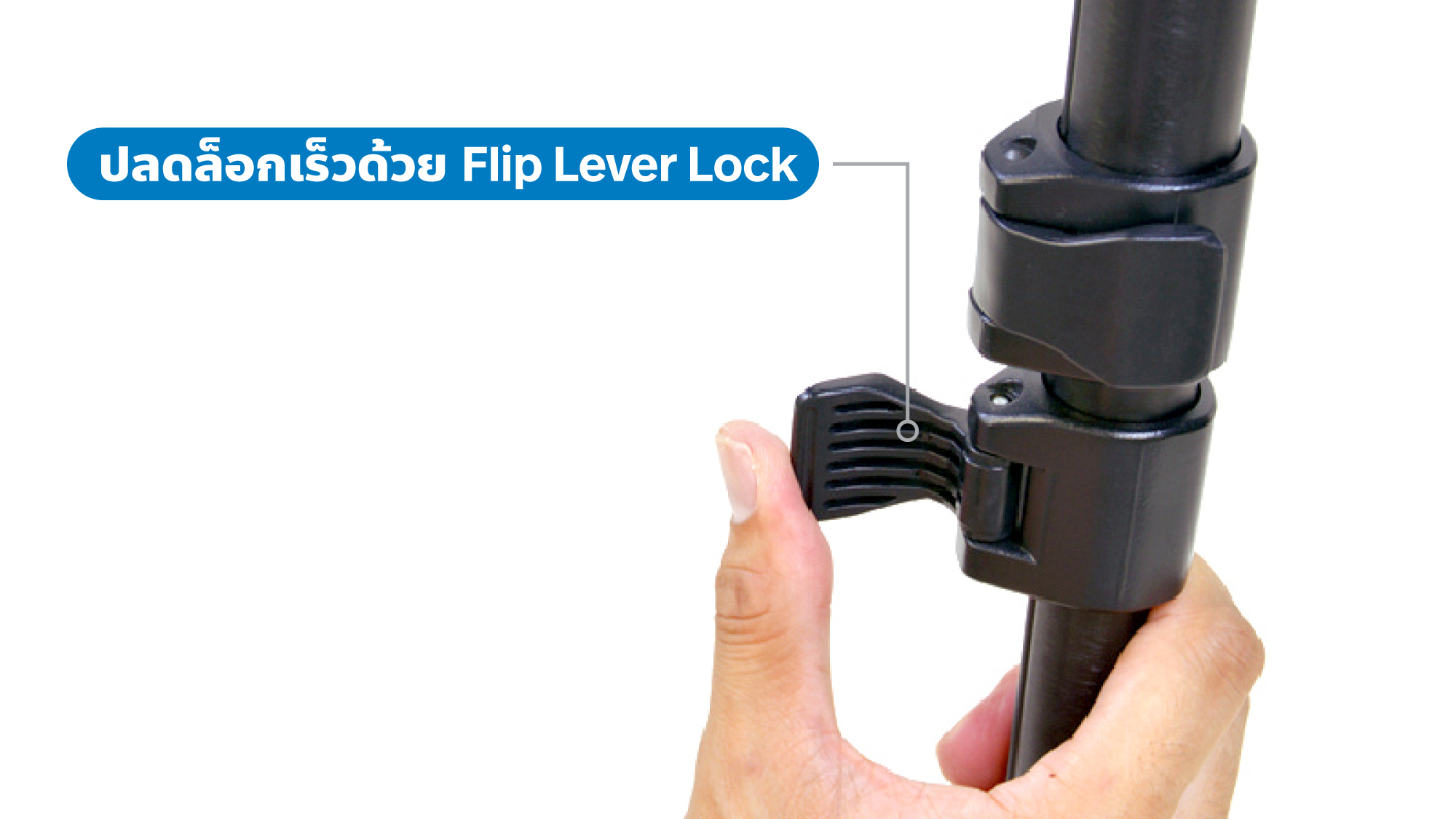 ยืด/หด ขาตั้งกล้องได้ง่ายและรวดเร็ว ด้วยตัวล็อกแบบ Flip Lever Lock ที่ช่วยให้ปลดล็อกได้ภายในพริบตา