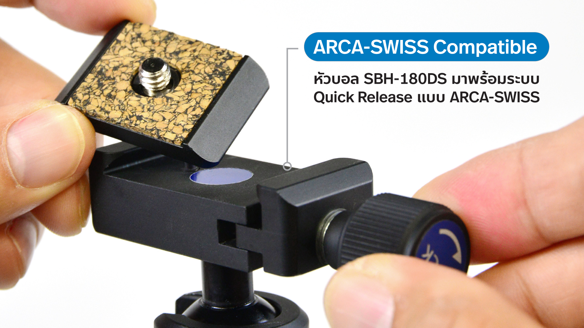 หัวบอล SBH-180DS มาพร้อมระบบ Quick Release แบบ ARCA-SWISS