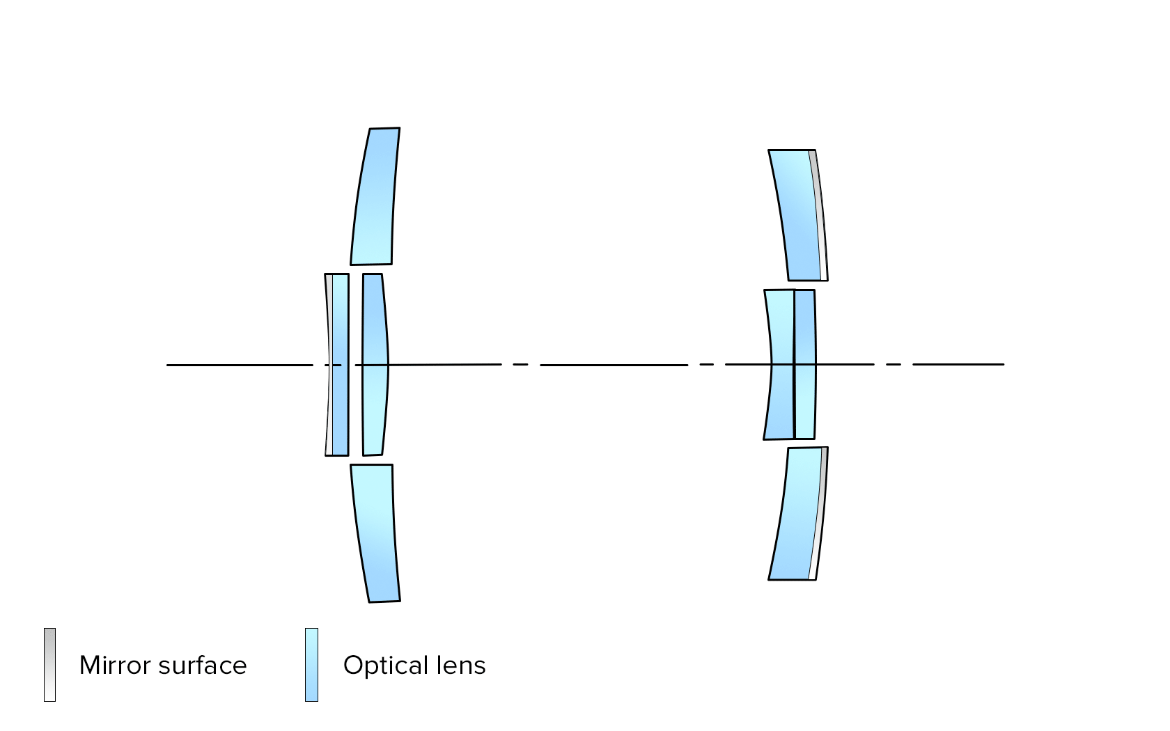 Mirror lenses คือเลนส์เทเลโฟโต้ที่ออกแบบโดยใช้เลนส์กระจกเป็นตัวสะท้อนแสงไปมาภายในเลนส์ซึ่งช่วยลดขนาดของเลนส์ให้เล็กลงกว่า 1 ใน 3 ของขนาดเลนส์ทั่วไป และทำให้มีน้ำหนักเบาเนื่องจากกระจกมีน้ำหนักเบากว่ากระจกออปติคัลมาก