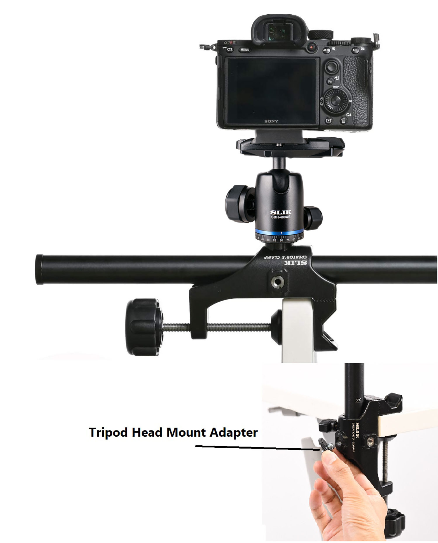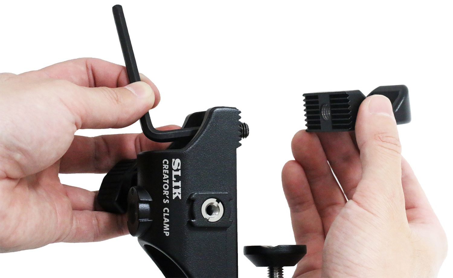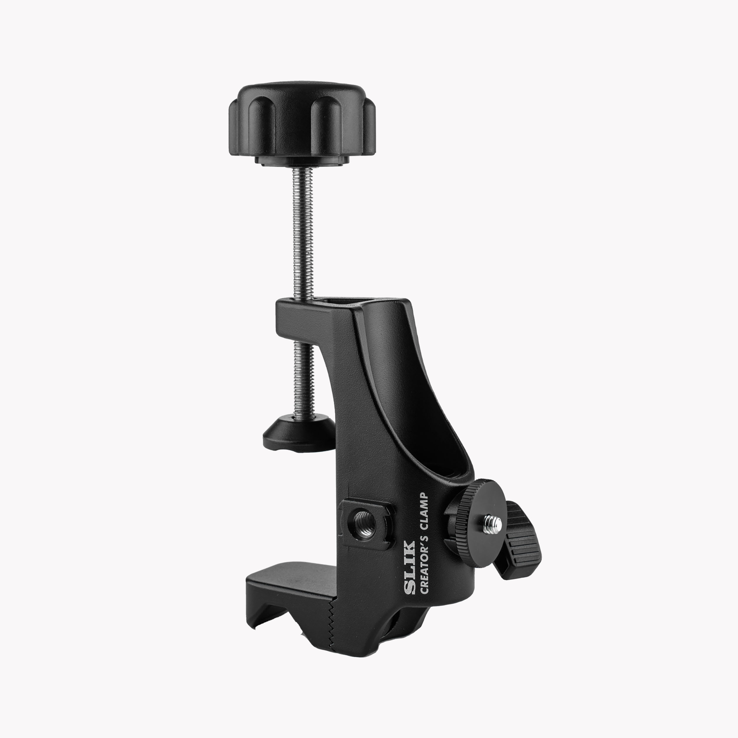 SLIK Creator's Clamp ตัวช่วยเซ็ตอัพอุปกรณ์ความยืดหยุ่นสูงสำหรับชาวครีเอเตอร์ ติดตั้งใช้งานง่าย น้ำหนักเบา และพกพาสะดวก เหมาะสำหรับใช้ติดตั้งกล้อง, สมาร์ทโฟน, แท็บเล็ตหรืออุปกรณ์เสริมงานสตูดิโอ รับน้ำหนักได้ 2 กิโลกรัมเมื่อติดตั้งเต็มรูปแบบ หรือรับน้ำหนักได้มากถึง 5 กิโลกรัมเมื่อติดตั้งกับตัวแคลมป์โดยตรงผ่านรูยึดอุปกรณ์แบบคู่ที่สามารถติดตั้งอุปกรณ์เสริมได้