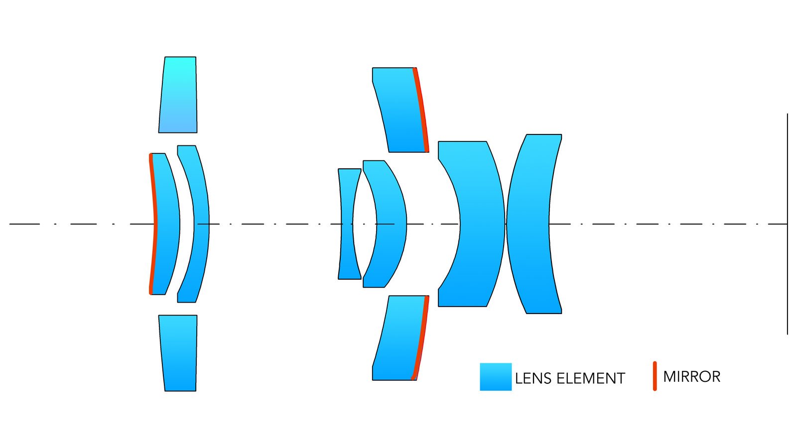 ความเล็กของเลนส์กระจกเกิดจากการออกแบบที่วางกระจกไว้ที่ด้านหน้าและด้านท้ายของกระบอกเลนส์ ปกติแล้วเลนส์ทั่วไปเมื่อแสงผ่านเข้าเลนส์จะตรงเข้าสู่เซ็นเซอร์ของกล้องทันที แต่สำหรับเลนส์กระจกเมื่อแสงเข้าสู่เลนส์จะสะท้อนกระจกถึงสองครั้งก่อนจะไปถึงเซ็นเซอร์ เรียกว่าเป็นการพับครึ่งเลย ดังนั้นความยาวโฟกัสจึงสั้นลงทำให้การออกแบบเลนส์เล็กลงด้วย
