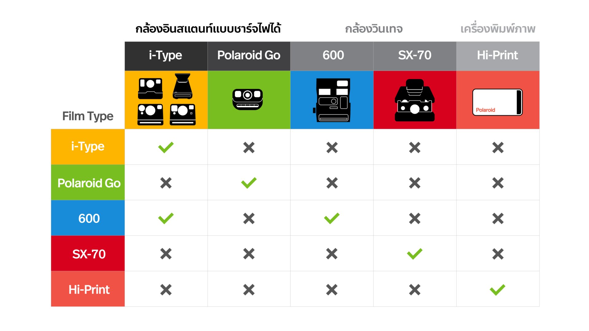 กำลังหาฟิล์มสำหรับกล้องโพลารอยด์แต่ไม่แน่ใจว่าต้องใช้ฟิล์มอะไร ตารางด้านล่างนี้ช่วยคุณได้ — [อัพเดทล่าสุด กันยายน 64]